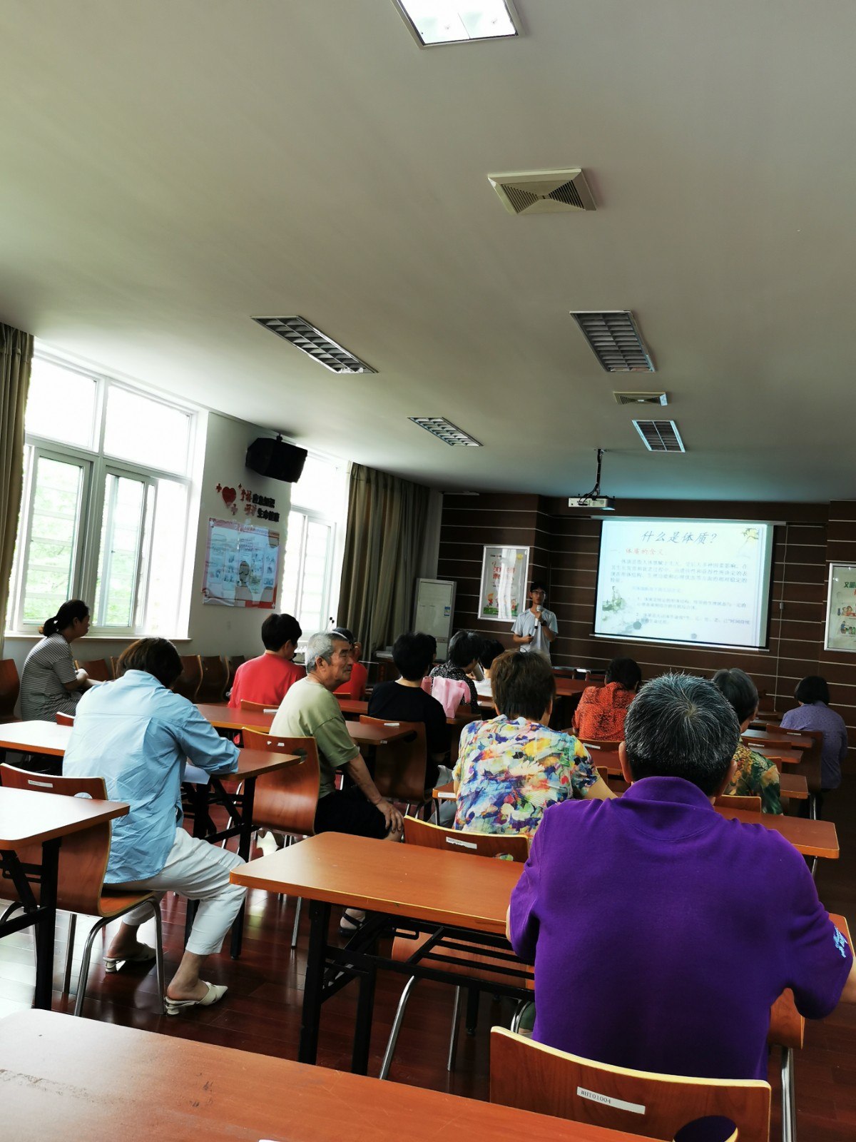 针对中老年人的健康养生需求,提高居民的健康意识,江畔社区于5月19日邀请第九医院余文亚医生来社区为居民进行“如何认识与调治体质”讲座。现场还为居民提供免费义诊,吸引了辖区内50多名中老人参加此次讲座。