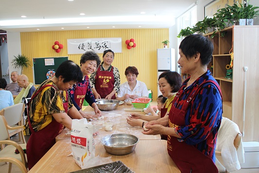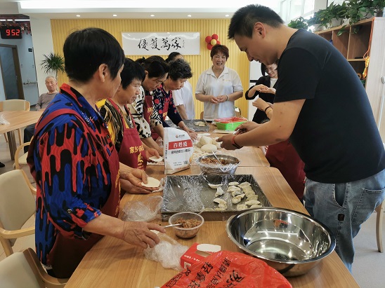 不久,一个个形状各异的饺子便诞生于阿姨们的巧手中,另一边灶上已烧开了水,饺子下入水中,不一会儿,一碗碗热气腾腾的饺子出锅了,俨然一副“清水飘芙蓉,元宝落玉盘”的景象。大家品尝着自己亲手做的饺子,对邱阿姨的牛肉萝卜馅饺子秘方赞不绝口,真道是“饕餮世间味,最是此物鲜!”