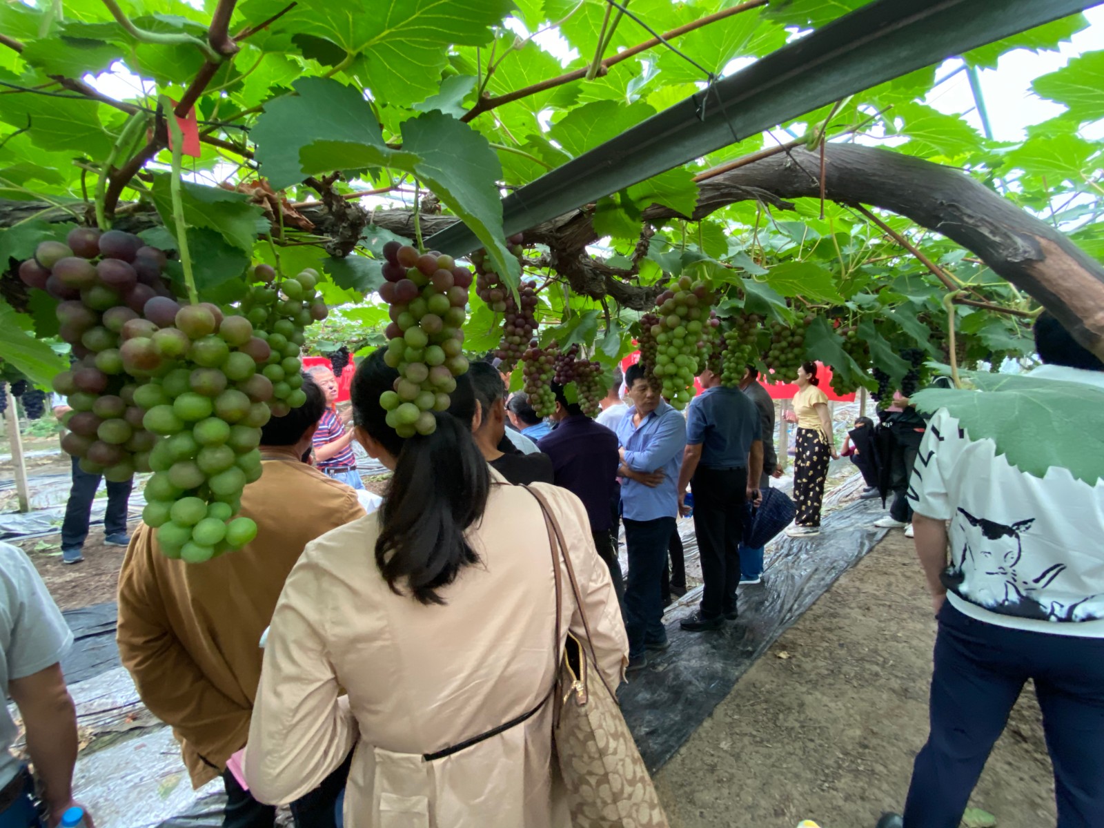 5月26日上午,余姚临山成校联合本镇干焕宜葡萄基地举办的‘夏宜玫瑰’葡萄新品种选育观摩现场会正如火如荼地进行着。