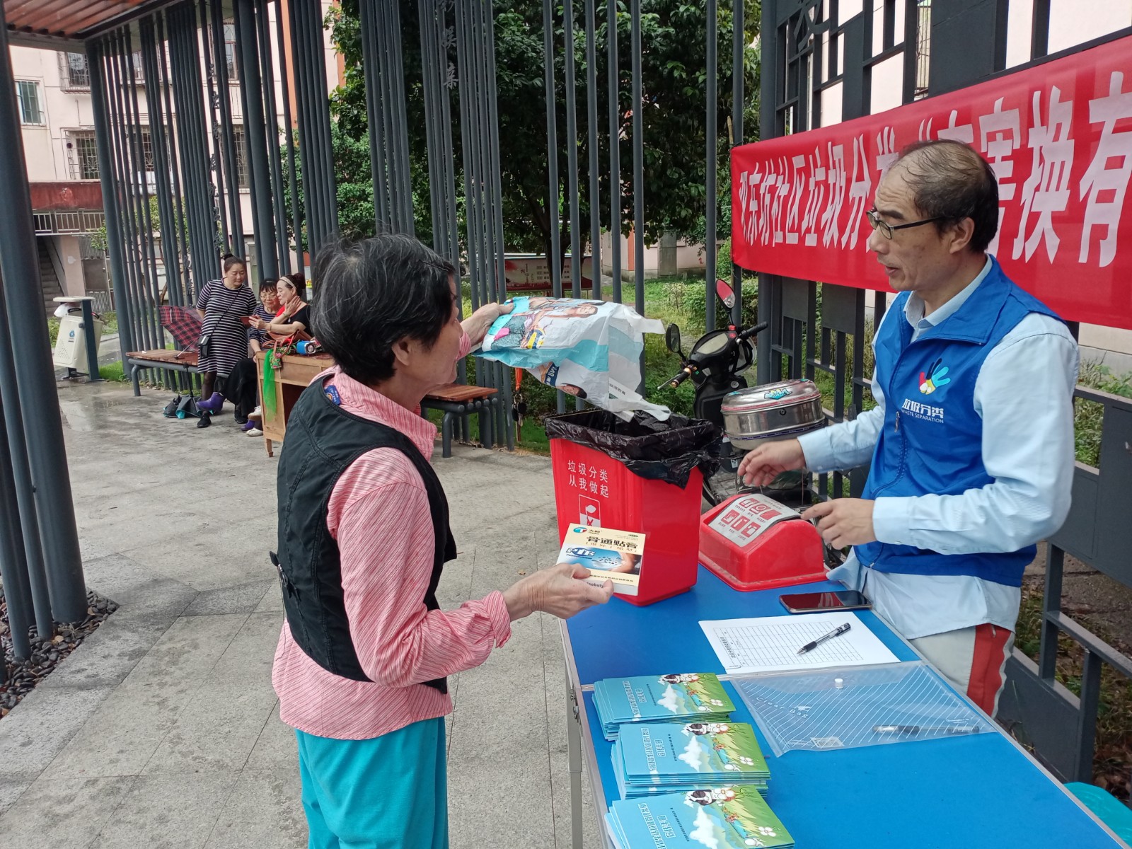 居民们纷纷将家里的过期药品、废旧电池、废手机等有害垃圾拿到活动现场兑换自己心仪的小礼品。社区工作人员还向居民详细讲解了垃圾分类的基本知识,以及如何进行正确的分类,向居民普及乱扔有害垃圾对环境危害的相关知识。