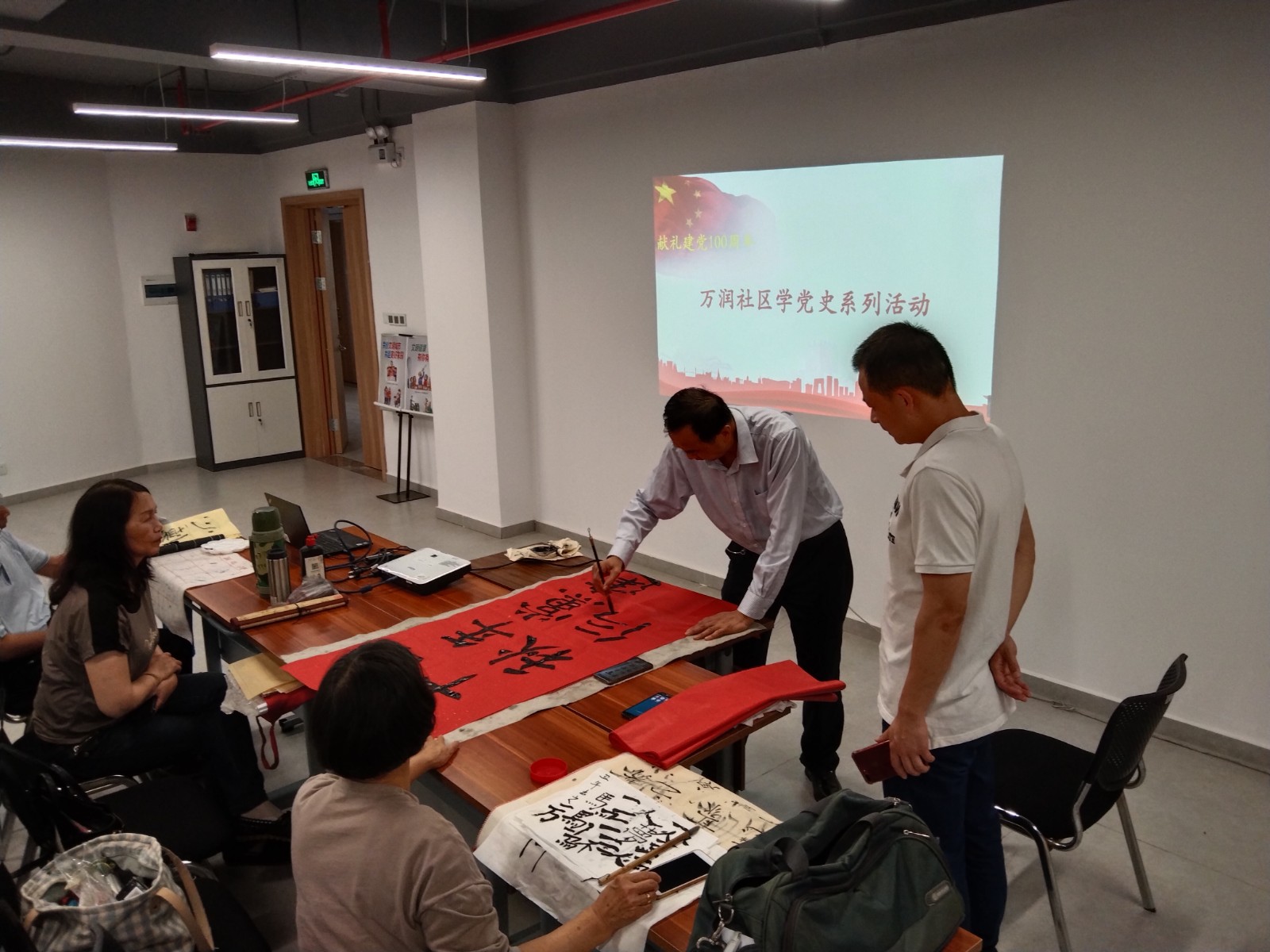 67日下午,为庆祝中国共产党成立100周年,深入学习中国共产党百年光辉历程,万润社区开展了“守初心 担使命—学党史书法活动”。
