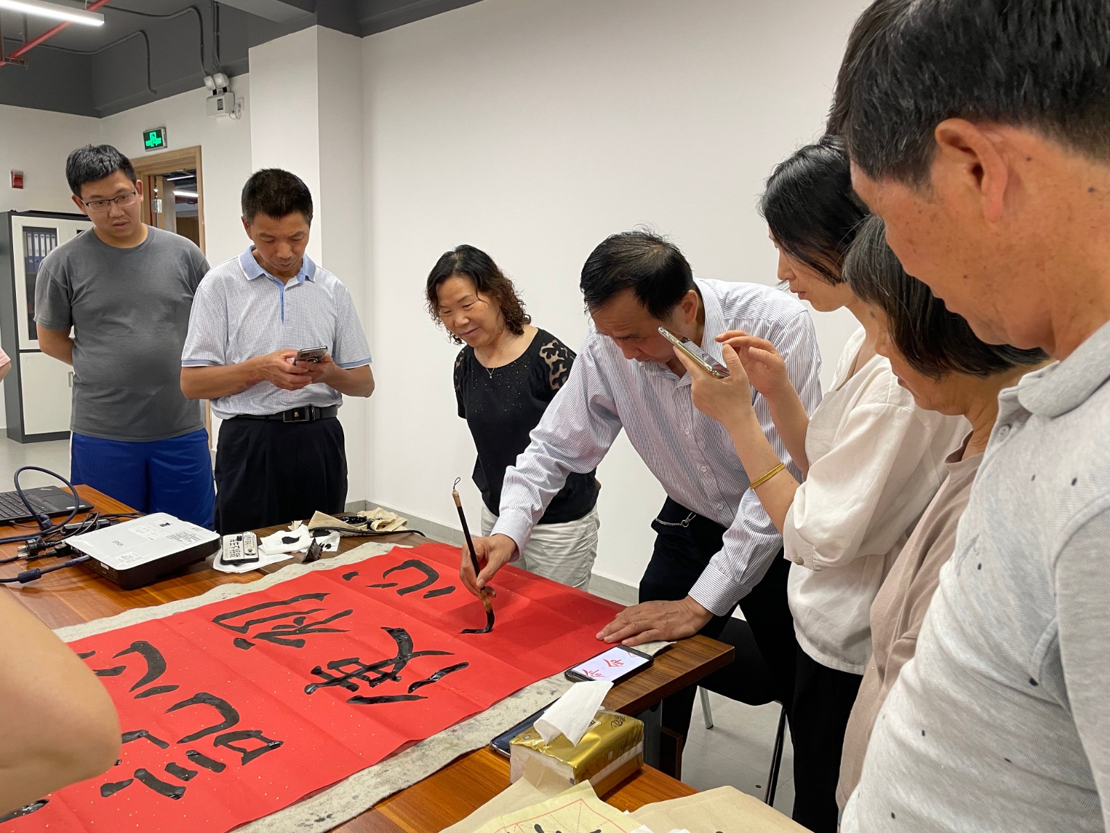 活动现场,白海提老师挥毫泼墨,先向学员们示范书法,写下“不忘初心,牢记使命”和“千秋伟业,百年党建”这十六个字,在写的过程中,既让学员们感受到传统书法的魅力和技巧,又体现出对党和国家的浓浓情意。与此同时,老师和学员们一起谈论着中国共产党的百年历程,大家都互相分享自己的党员经历和身边的党史故事,随后学员们在老师的指导下,纷纷写下了对中国的美好祝愿。