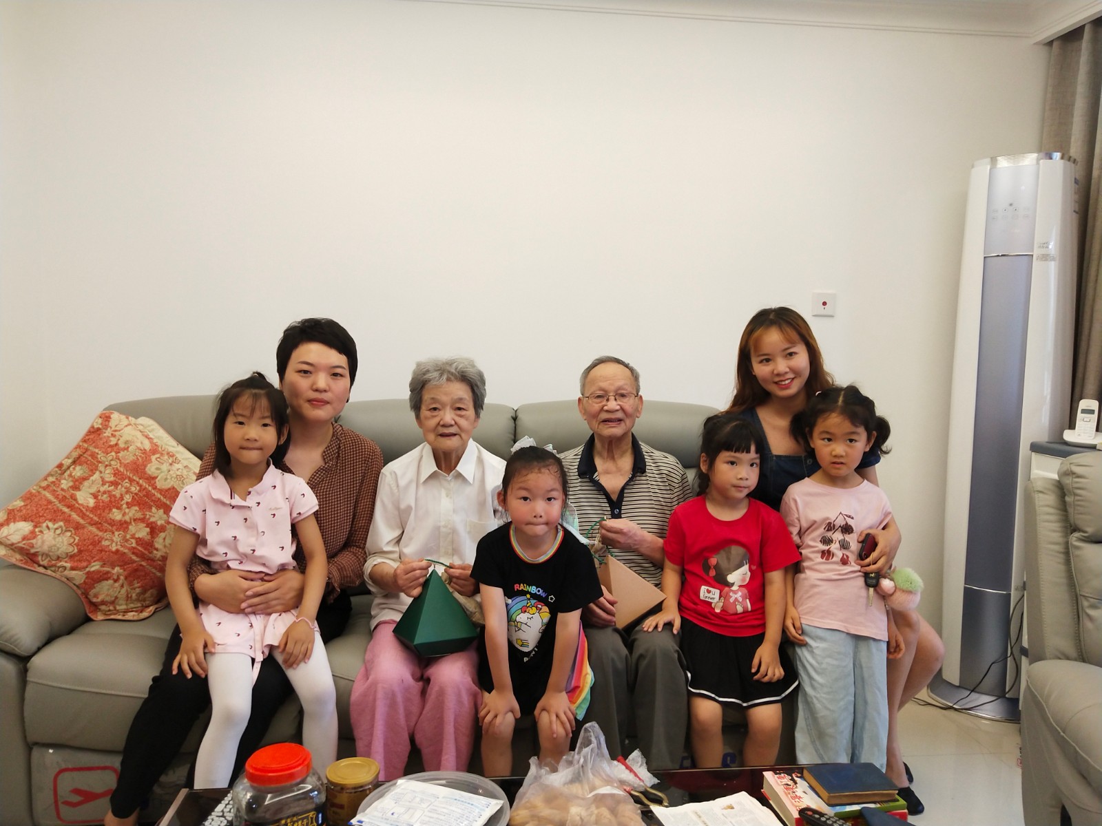 “笃笃笃笃笃——”清脆的切肉声在社区四楼活动室里密集响起,原来是社区叔叔阿姨在准备包粽子的陷儿,现场一片热闹。紧接着到了包粽子的环节,怀之幼儿园的小朋友们围坐在阿姨们的身边,大手包小手,耐心地学习着包粽子,只见阿姨们娴熟的把粽叶放平,用剪刀裁平粽叶的一边,在左手的掌心折成倒圆锥的形状,用右手在面盆里抓一把糯米放进去,放一半,再放快腌制好的五花肉或者两颗蜜枣,再放一勺的糯米,压实用叶子折叠一番,用棉线捆扎住,一只小巧而结实的小脚粽就裹好了。随后,社区党员、网格员带领小朋友拜访了抗美援朝老兵曾先生及其夫人、高龄老人、环卫工人,慰问老人身体安康,赠送了暖心小礼物粽子和香囊,同他们共度端午。