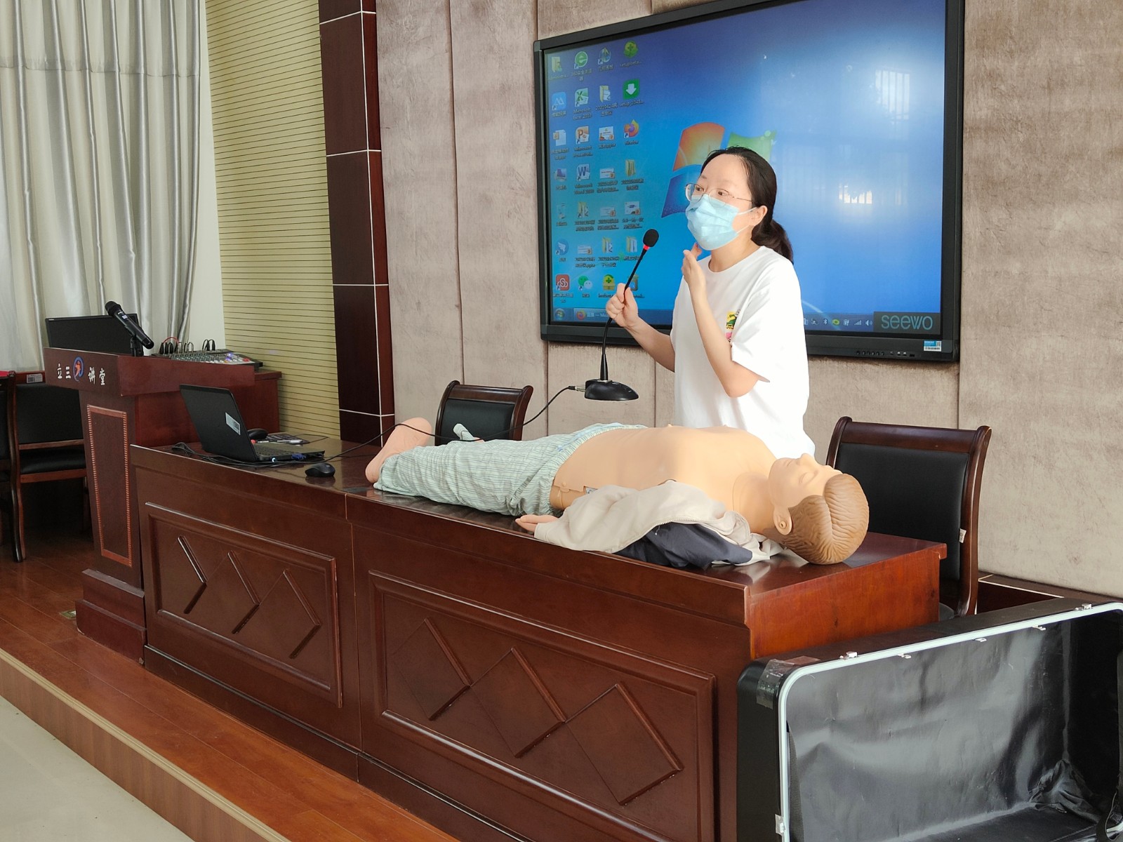 针对老年人因心血管健康隐患可能导致的心梗、晕厥等常见突发情况,王菊芬医生通过模型人演示,现场教学CPR心肺复苏法。同时对于常见的老年人和幼儿异物梗阻,介绍海姆立克救助与自救法,以真实模拟的两大急救常识讲解,提高老年人自救能力。