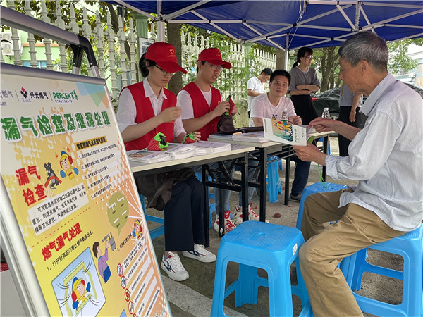 在活动现场,通过搭设咨询台、摆设宣传板、发放宣传册等方式向居民介绍燃气安全常识,解答居民提出的相关问题,并指导老年人正确开关燃气管阀。同时着重提醒了居民不得擅自安装和拆、改、移室内管道燃气设施,引导安全使用燃气。