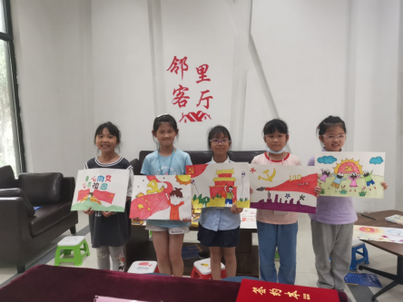 随后,邻里客厅举办了第一场迎六一活动。小朋友们纷纷拿起画笔,用丰富的想象力描绘出充满童趣的图案绘制结束后,小朋友集体拍照留念,还将作品放置在会客厅展览,成了一道美丽的“风景线”。