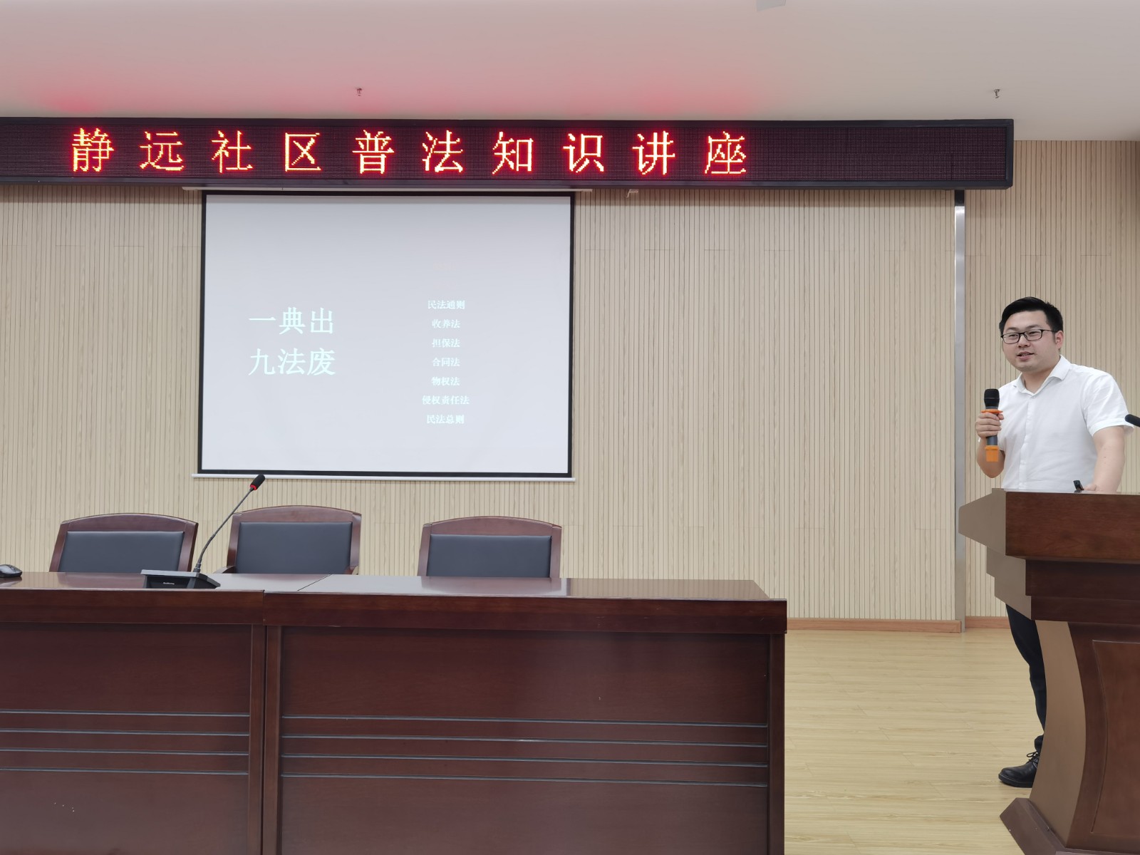 为增强广大群众“学法、遵法、守法、用法”意识,提高群众维护自身合法权益的能力,6月16日下午,静远社区邀请顾问律师王凯杰为社区居民开展普法知识讲座。