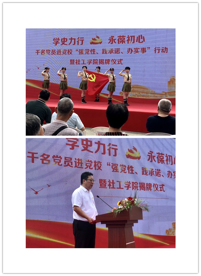 6月17日,“学史力行 永葆初心”——千名党员进党校“强党性、践承诺、办实事”行动暨社工学院揭牌仪式在骆驼街道党校(骆驼成校)举行。