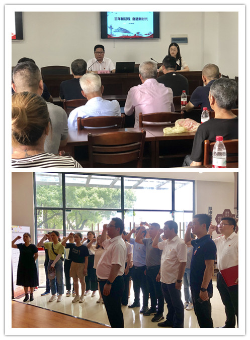 仪式结束后,梅海平还带领街道2021年新发展入党党员进行入党宣誓,并为街道党员干部上了题为《百年新征程  奋进新时代》的专题党课。下一步,街道将继续坚持“建、管、用”的原则,进一步细化培训计划、优化培训内容、完善培训体系,用心用力建好党校和社工学院,打造好街道的特色教育平台。