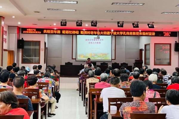 为铭记百年党史,不忘初心砥砺前行。6月18日,宁波大学孔伟英教授为勤勇村辖村内广大老年朋友宣讲“建党百年看世界百年未有之大变局”为主题的知识讲座。