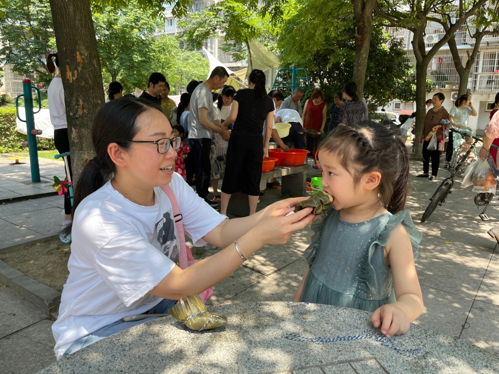 同时,社区各物业小区纷纷开展裹粽子送温暖活动将一份份满载心意的粽子送到小区居民手中,让他们感受来自大家庭的温暖。