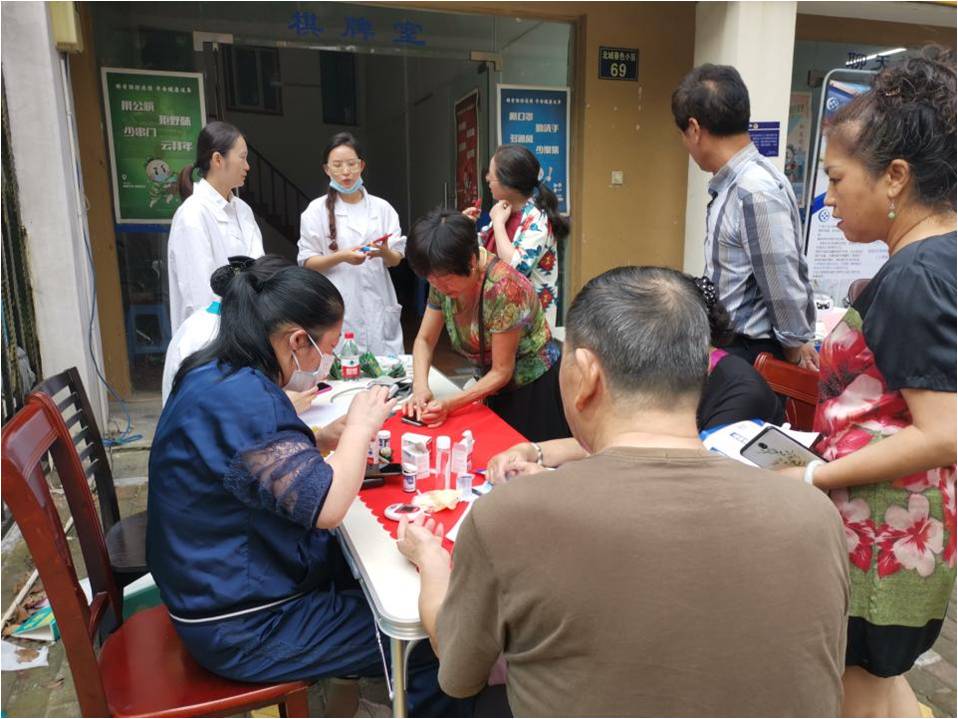 上午九点不到,不少居民已经围在活动现场,阿姨们问道:“还是上次的老师傅们吗?”社区志愿者忙碌的摆起了桌椅,做着准备工作,量血压、测血糖的座位前也早早有人等候着呢,很快活动室门口就站满了老老少少。志愿服务的医生耐心地为居民量血压、测血糖,解答居民提问,修理电器的徐师傅忙碌着为大家拆修电扇。。。