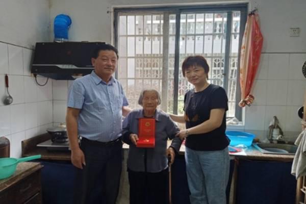 6月21日上午,在耄耋之年的吴秀兰家里,社区党委书记傅裕根和联社干部严海文送上困难党员慰问金,亲切询问了老人目前的生活及身体情况,嘱咐她保重身体,并为其佩戴“光荣在党50年”纪念章。