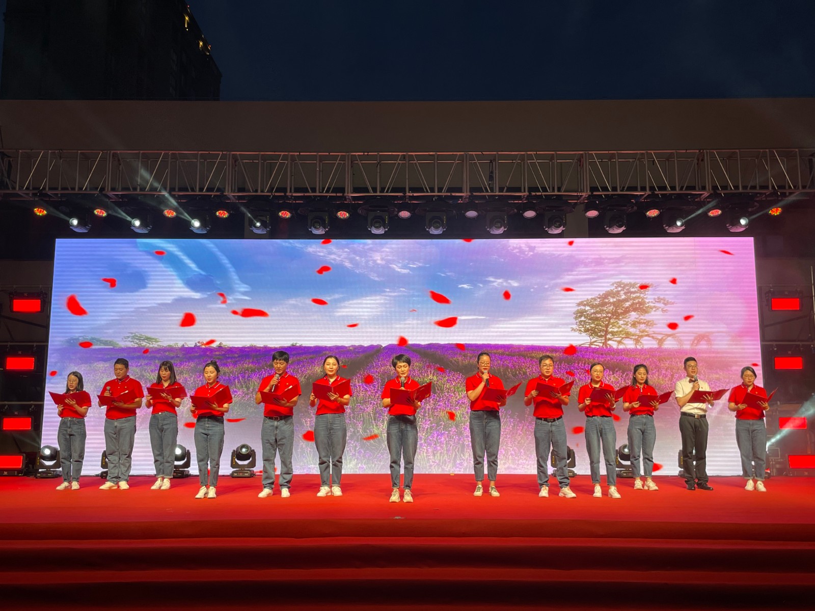 随着中国共产党百年华诞这个神圣的日子款款来临,在大家的期盼中,6月25日晚,汉郡社区庆祝建党100周年“红心向党,党旗飘扬”暨汉郡社区党总支成立一周年文艺晚会,在启迪幼儿园隆重举行,来自辖区的党员干部、居民代表、共建单位及周边居民近200人前来观看。