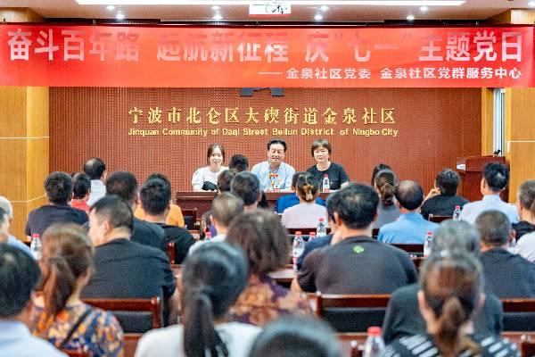 6月24日晚上,金泉社区党委组织辖区70余名党员在社区新时代文明实践站共同参与“奋斗百年路 启航新征程”为主题的庆“七一”主题党日暨灵山大讲堂第288期,并邀请大碶街道党校讲师团成员俞国荣老师来为前来参与学习的党员们进行授课。