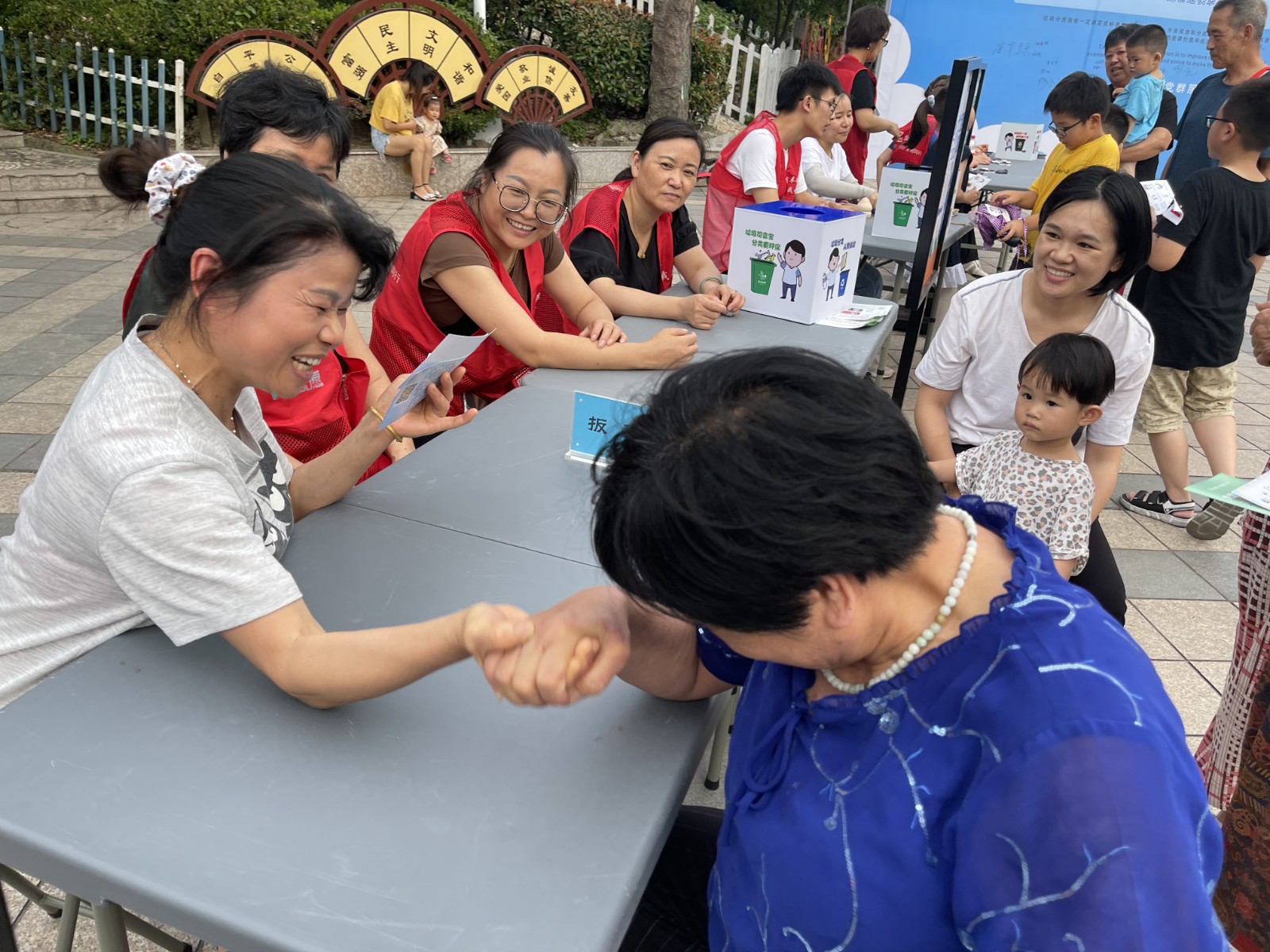 本次活动以开放式游园会的方式举行,现场设立了“垃圾分类签名墙”,居民们纷纷在签名墙上签下自己的名字,作为对垃圾分类行动的支持。此外,还设有50、60后小时候经典怀旧游戏摊位,游戏包括“拾石子儿”“扳手腕”“滚铁环“抽陀螺”四大环节。居民们每个人到签到处领取一张游园通关卡,每通关一个游戏可加盖一个过关印章。每个人集齐4个游戏印章后,可在“领奖台”兑换纪念品一份。精彩的游戏让现场笑声不断,不少社区居民表示这样的活动很有意义,让他们在游戏过程中了解垃圾分类知识,更直观、更深刻地认识垃圾分类的必要性。