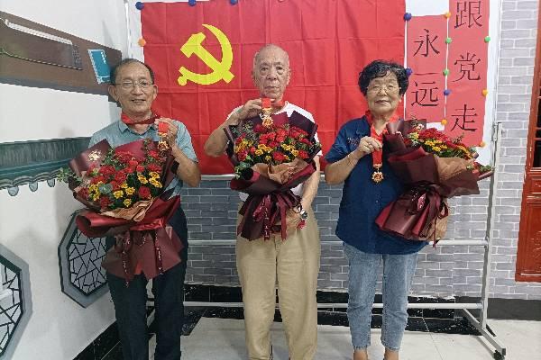 宝峰社区于6月底召开党员大会,进行了“光荣在党50年”纪念章颁发仪式。仪式上,党支部书记严修成为到场的3名“光荣在党50年”老党员颁发纪念章,代表党组织对老党员们几十年无私奉献致以崇高敬意和真诚感谢,也用老党员的初心精神,对全体党员进行忠诚与信仰的教育。