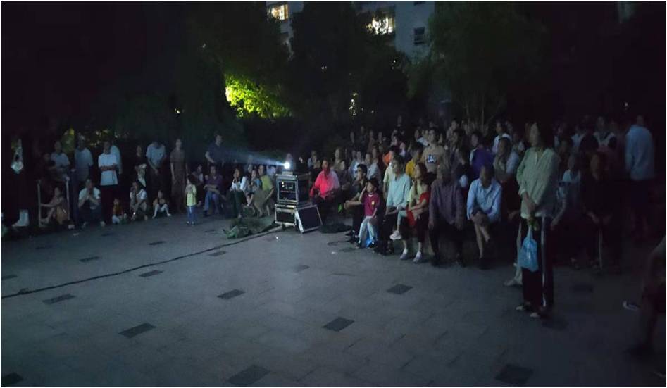电影放映前,社区工作人员和网格长就在辖区贴出通知,而居民也热情高涨,大家两个一伙,三五一群来观看电影。此次活动正值建党100周年的大背景之下,既推动了社区文化建设,丰富了社区居民的业余文化生活,加深了邻里感情,也给居民们送去欢乐、送去精神食粮,为他们搭建起沟通的桥梁,增进邻里之间的情感交流。同时使居民与社区的距离更近了,营造了和谐的社区环境。