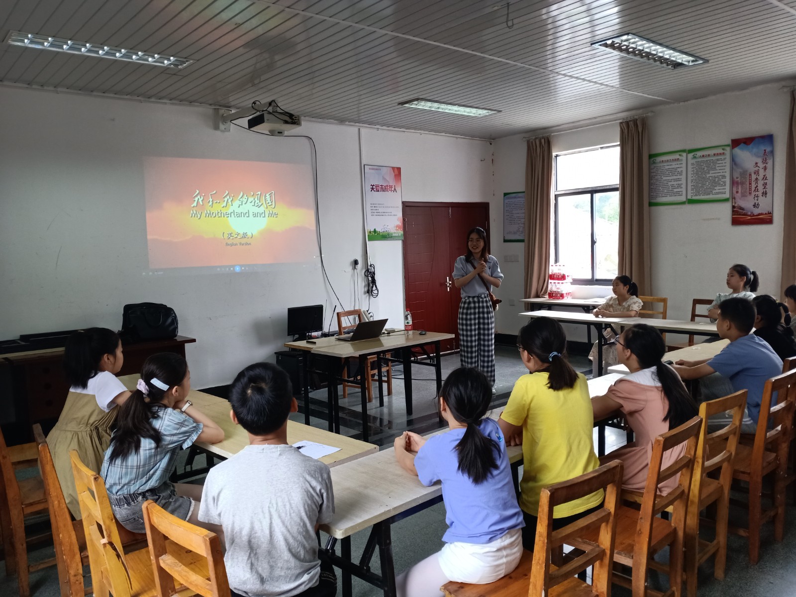 活动在大家合唱英文版的我和我的祖国的歌声中落下帷幕,虽然有些词孩子听不懂,但他们唱歌的时候眼睛亮亮的,新的红色的种子已经在他们心里落了根。
