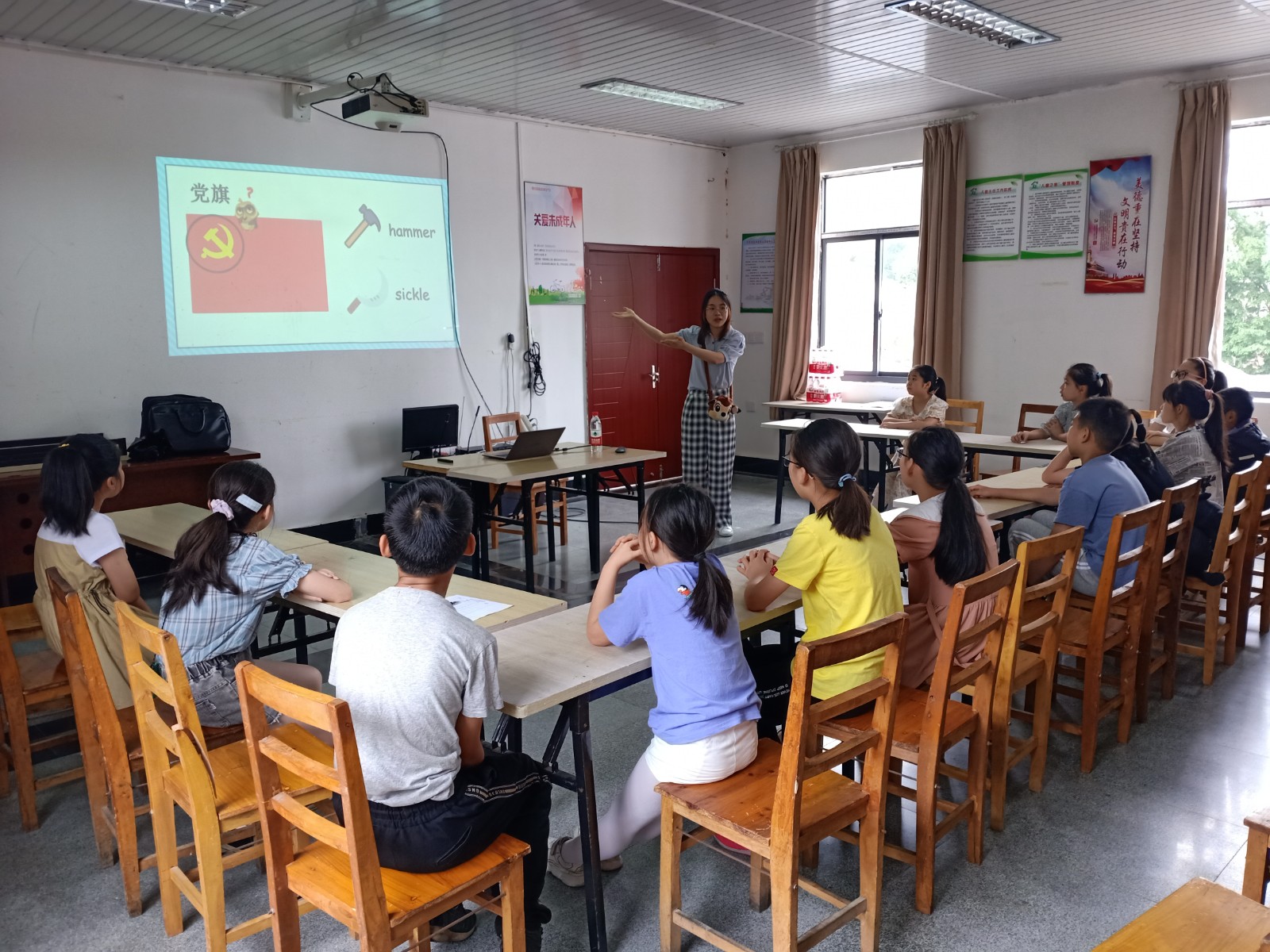 河东社区内有许多外来务工人员的子女,暑假来临,父母上班的他们都成了留守儿童,为了能让这些孩子度过一个充实有趣的暑假,正值中国共产党百年诞辰,河东社区邀请英语老师,党员沈老师为孩子们上了一堂别开生面的爱国主义英语课。