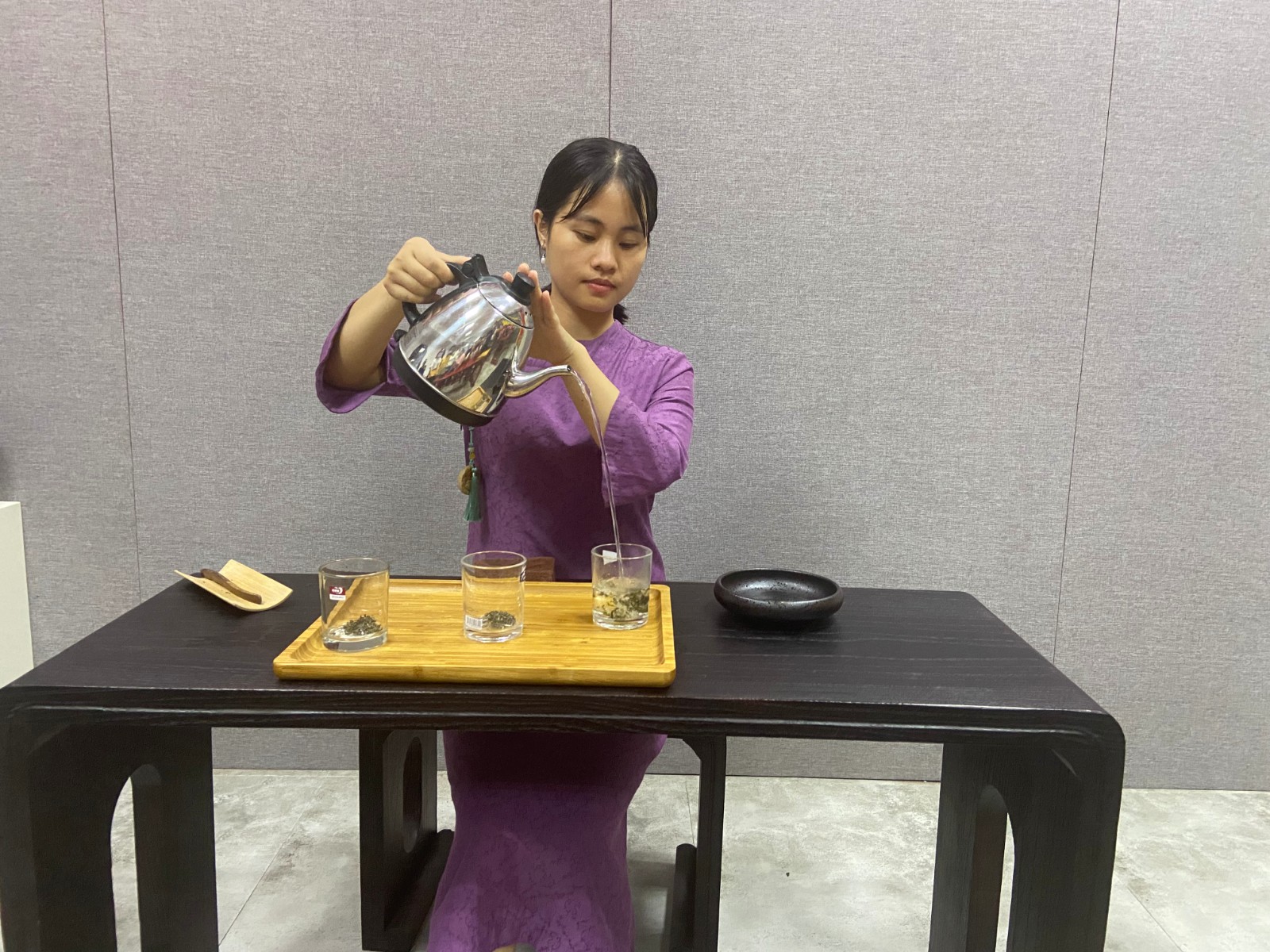 培训现场茶香四溢,茶艺老师先给大家讲解了茶艺的基本知识,从识茶、煮茶、泡茶、倒茶、品茶,到茶礼仪、茶与健康、茶与修养等。随后,老师现场演示了茶道技艺和礼仪,并指导学员们一步步进行茶的冲泡技法。“我以前就知道泡茶,没想到里面有那么多讲究,还是挺有意思的。”学员韩佩芬说,“感谢能有这样一次培训,多学一门技术对未来工作生活总是会有帮助。”