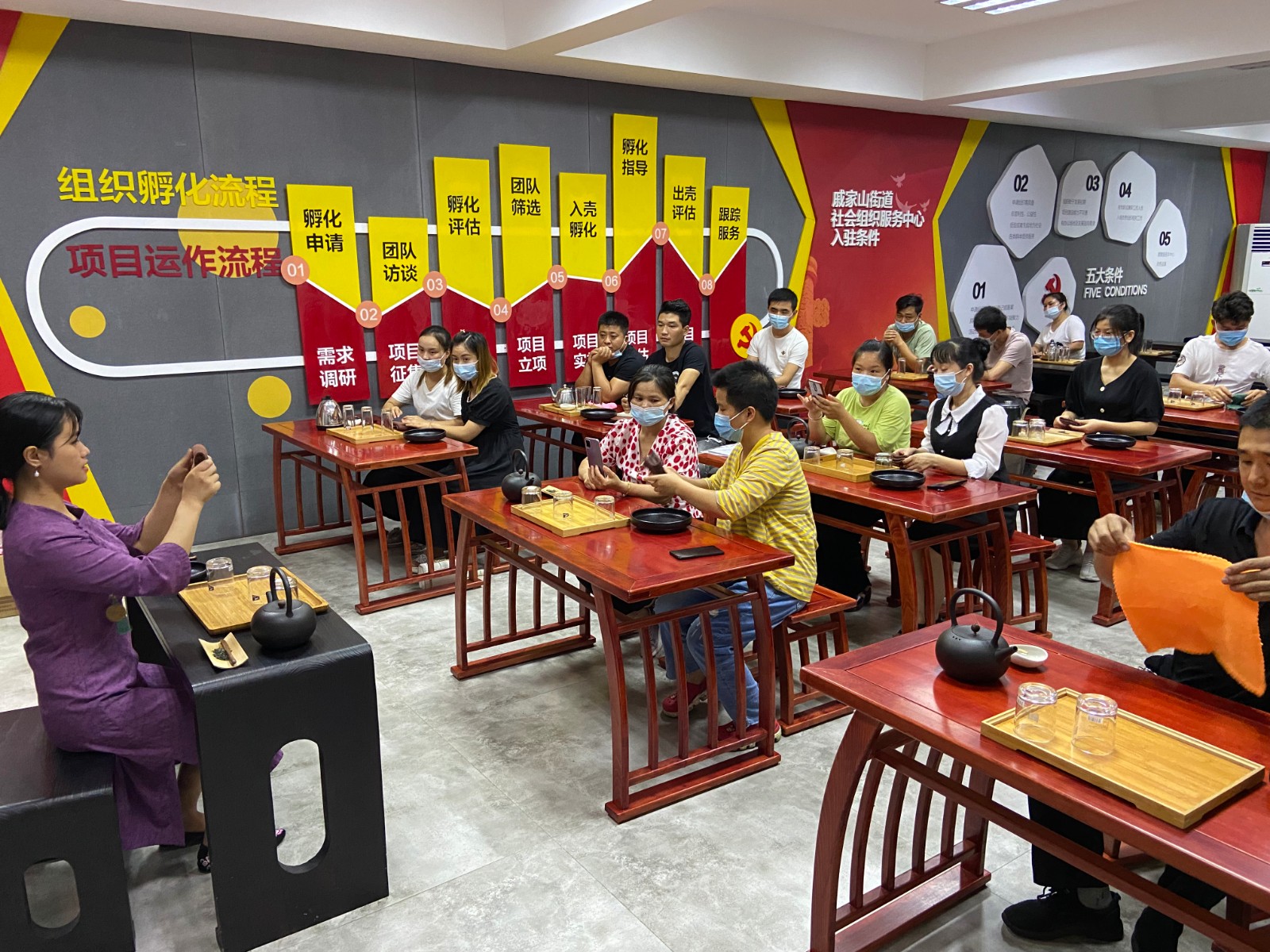 为提升辖区内外来务工人员创业就业能力,教育和引导广大务工人员创业就业观念,7月1日晚,戚家山街道新时代文明实践所、五四乡帮社会服务中心联合宁波金城职业培训学校在戚家山党群服务中心二楼开展了第二期茶艺培训活动。
