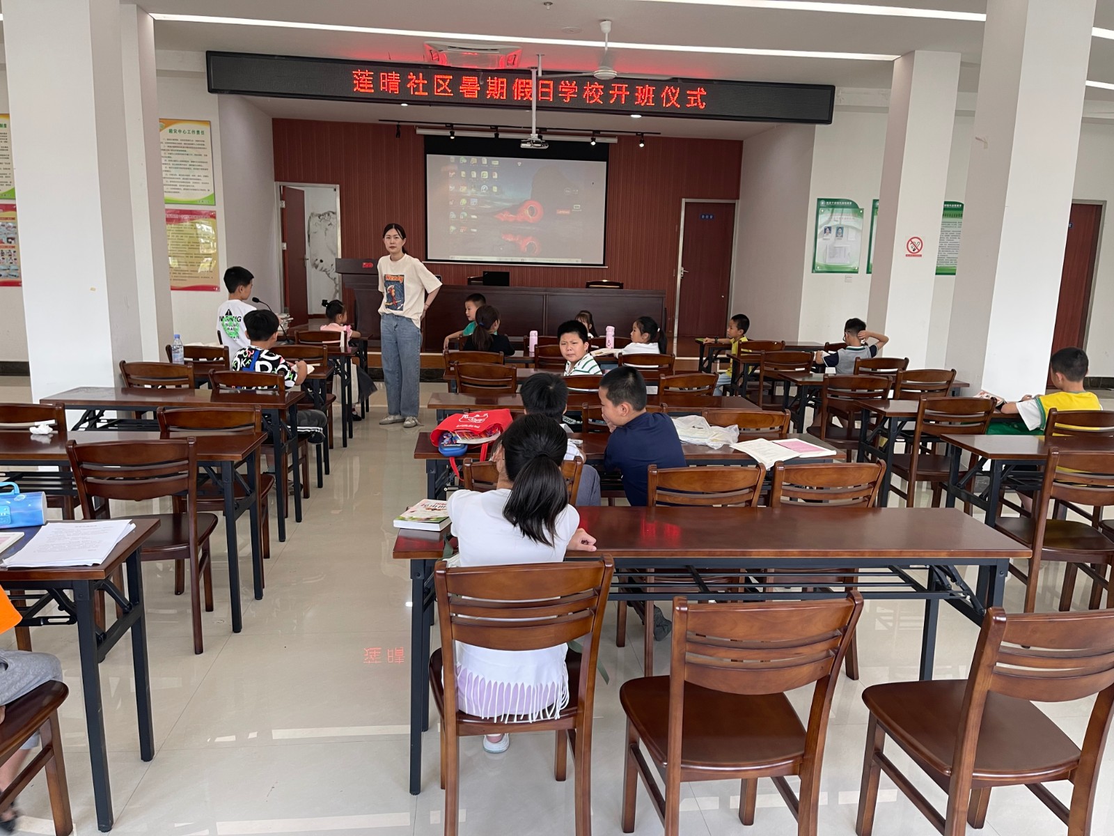 为使辖区内青少年度过一个安全文明、健康快乐而又有意义的暑期生活,75日上午莲晴社区暑假班开学啦!