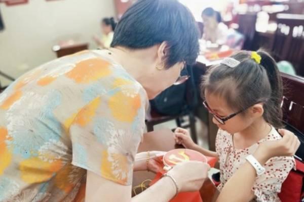 课上,老师们下发了刺绣所需的党旗和针线等物品,之后用语言讲解、示范,传授刺绣技巧,还手把手进行指导,小学员们在老师们的示范和手把手的教学下,认真地一点点学着。最后大家听老师们讲解了党旗的由来,以及国家对非物质文化遗产的重视与保护,不仅学会了一点刺绣,还理解了党徽的含义。小学员潘晨羲说道:“我觉得这次刺绣很有趣,在学的过程中,才知道党徽原来是这个含义。”