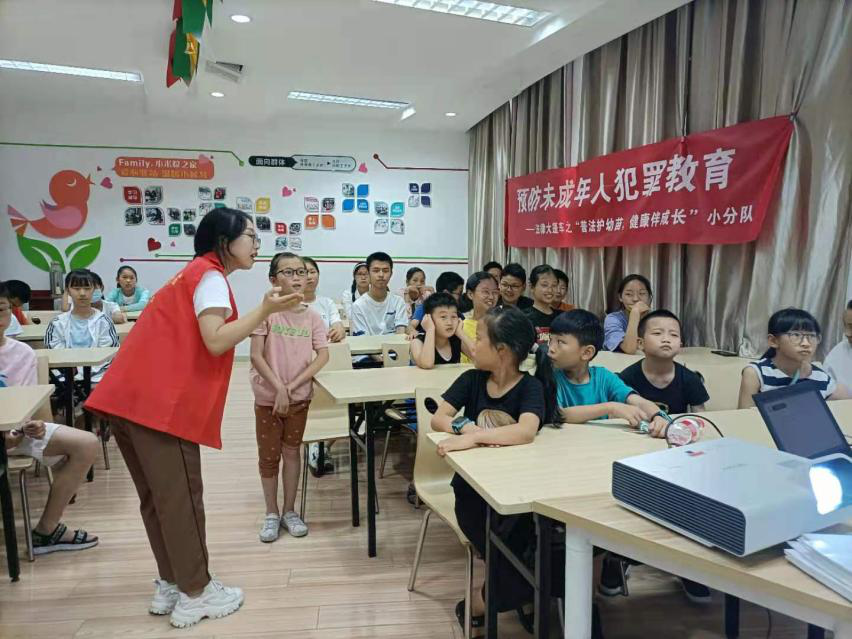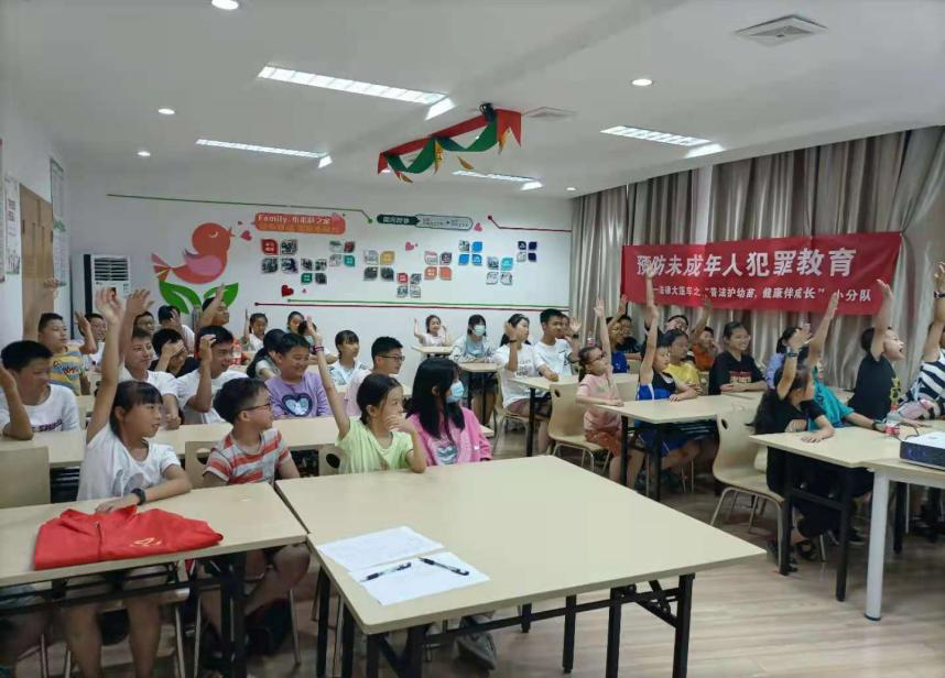 为进一步加强青少年法制教育,增强他们的法制观念,维护青少年合法权益,长兴社区假日学校联合宁波大学法律大篷车之“普法护幼苗,健康伴成长”小分队开展了预防未成年人犯罪宣传教育活动。