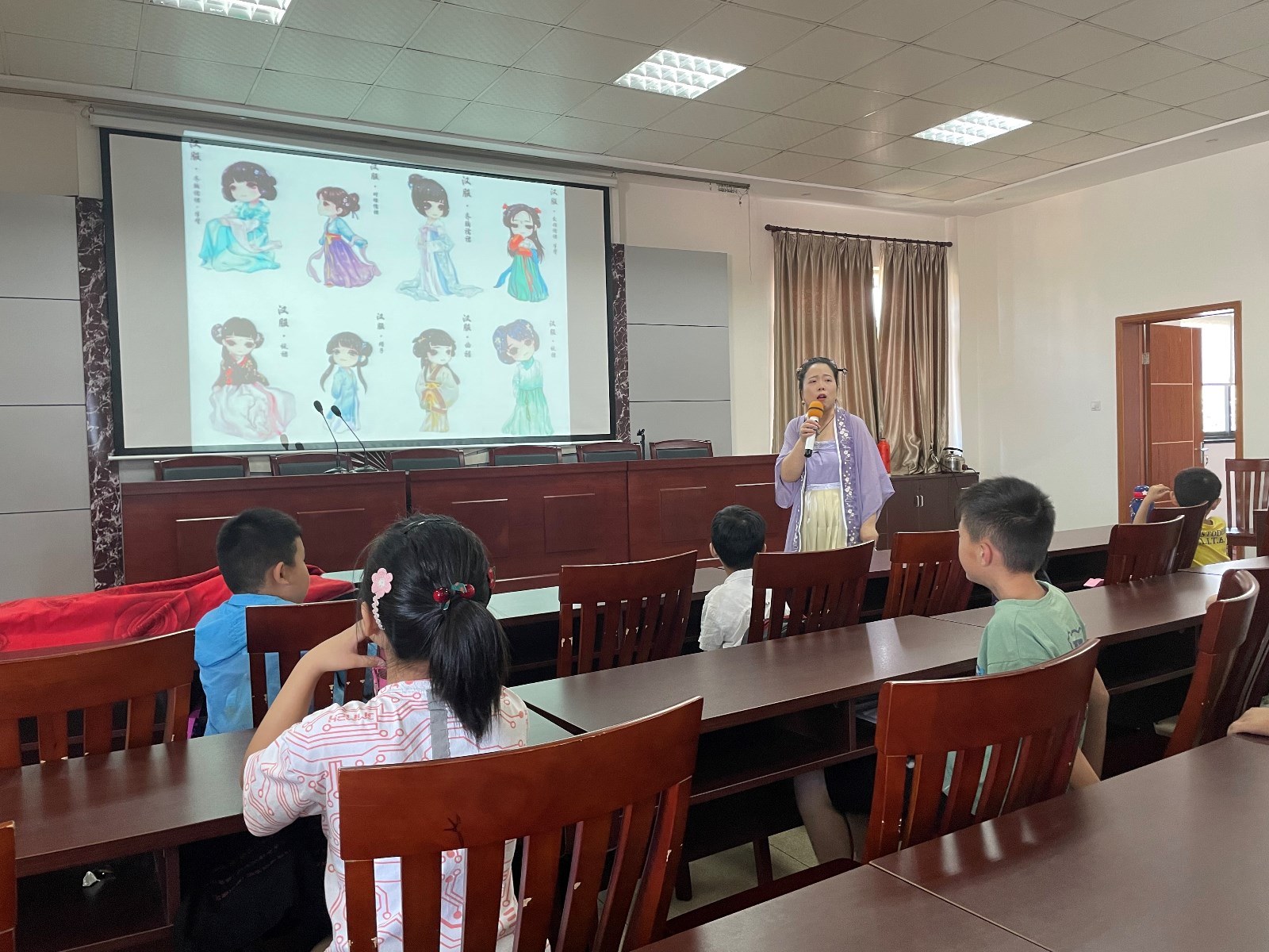第二节是汉服课。丁侠尔老师身穿汉服,给大家一个最直观的感受。她首先给孩子们讲述了汉服的演变历史。汉服是华夏礼仪的必要组成部分,是中国“礼仪之邦”、“锦绣中华”的体现。”汉服文化发展至今,已有几千年的历史了,在经过了这么多年的沉淀后,变得更加韵味深远。接着她让几个带了汉服来的孩子换上了衣服,本次活动让孩子们直观的感受到汉服之美、文化之美、传统之美。