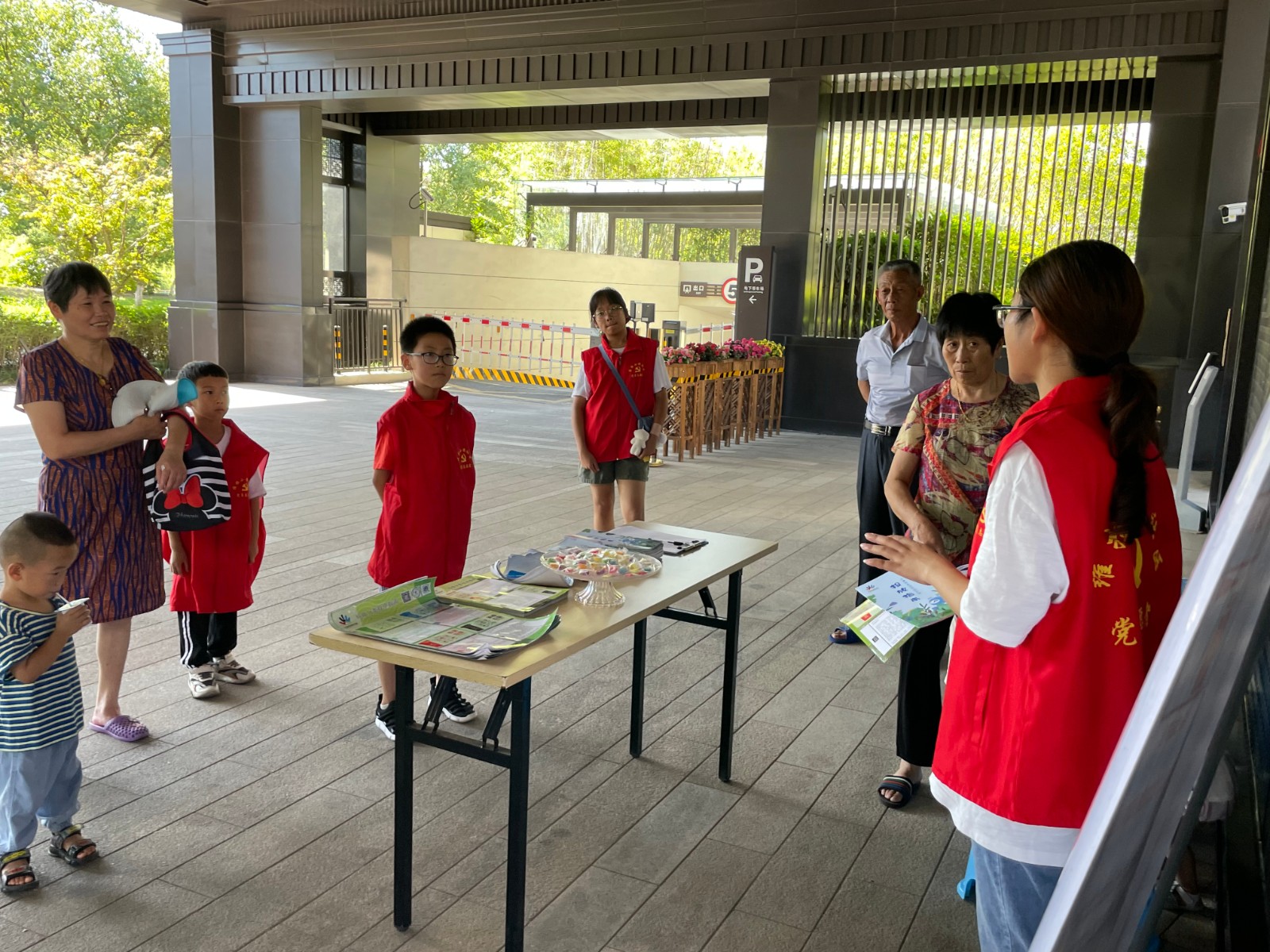 为了引导青少年积极参与到垃圾分类的行动中,加强青少年垃圾分类意识。7月15日,维拉小镇社区在辖区官山望小区门口开展以“青春在行动  环保守卫者”为主题的垃圾分类宣传活动,党员引领青少年在活动中认识、参与、践行垃圾分类。