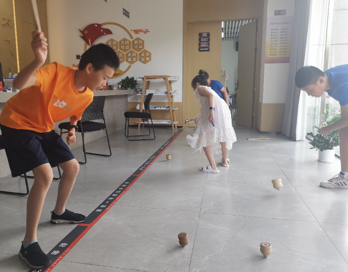游戏学习活动设有打陀螺、拍纸牌、跳皮筋、弹珠、穿线棚、滚铁环、踢毽子五个项目。虽然天气炎热,但活动现场热闹非凡,孩子们个个兴致高盎,你为我加油、我为你喝彩,现场洋溢着欢乐的气氛。最后,获奖者得到了相应的奖品,每位报名参赛人员均有纪念品一份。活动得到了家长和孩子的一致称赞,纷纷表示希望社教中心、社区今后多组织这样的活动,给孩子一个快乐健康的成长空间。
