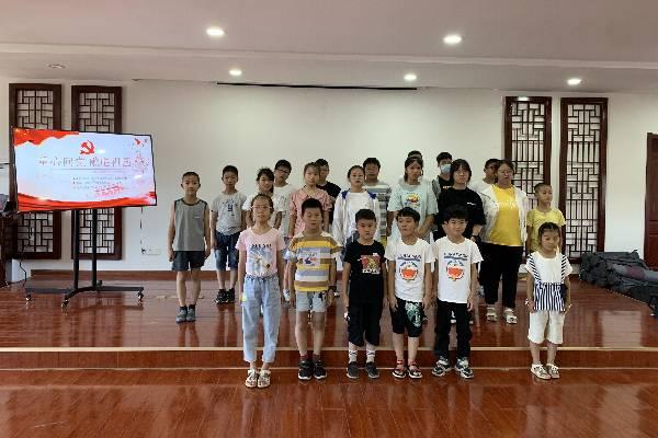 7月14日上午,蔚斗社区假日学校开展以“童心向党,歌唱祖国”为主题的唱红歌活动。