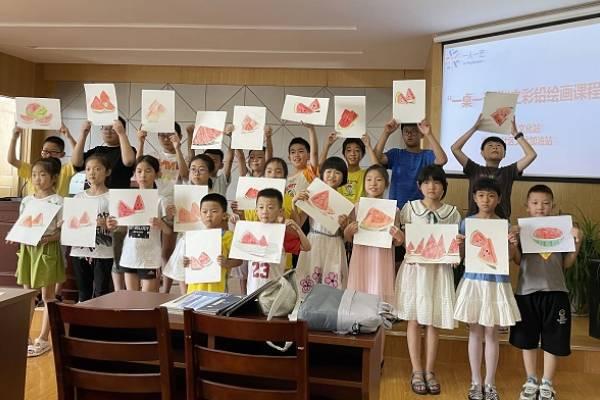7月12日上午,由四位老师在塔峙岙社区假日学校给同学们上了一堂精彩的美术课,共23位小朋友参与,他们在课上踊跃发言,学会了如何用彩铅画出生动的西瓜。