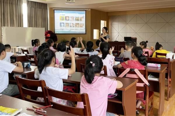 课程一开始,朱老师给小朋友粗略的介绍了中国共产党的历史和发展,接着教小朋友们一起唱红歌,老师拿着话筒和小朋友们你一句我一句的轮流接唱,这让原本如古潭一般平静的教师瞬间热闹了起来。最后老师为大家挑了几首红歌,让大家一边写作业,一边听歌,感受红歌的魅力。
