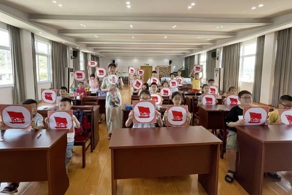 课程开始,胡老师给小朋友介绍了剪纸的来历和载体,通过一些简单的例子和问答来让小朋友们跟清楚的认识这项非物质文化遗产。然后胡老师给同学们布置了今天的作业——红船,接着发了今天剪纸课的材料,教小朋友们剪纸的动作和技巧,小朋友们的剪纸手艺也在胡老师的教导下慢慢熟练起来,纸片和剪刀在小朋友们的手里好像跳起了华尔兹,轻快而有节奏,不一会就有小朋友们陆陆续续地剪好了。胡老师接过剪好的剪纸,放到纸板上,用熨斗轻轻一熨,这带着党旗的红船就装裱好了。课程的最后,小朋友们拿着各自的作品和胡老师一起拍了合照,看着他们手里拿着装裱好的红船和脸上的笑容,胡老师热情地留下了联系方式,让喜欢剪纸的小朋友可以向她请教。