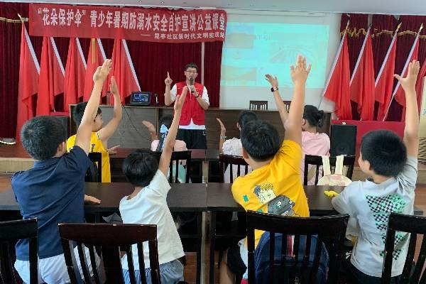 为提高青少年安全意识,做好暑期安全教育和安全防范工作,深化防溺水安全教育,7月14日,北仑区春晓成校昆亭社区“爱幼三益堂”假日学校举办了“花朵保护伞”青少年暑假防溺水安全自护宣讲公益课堂。