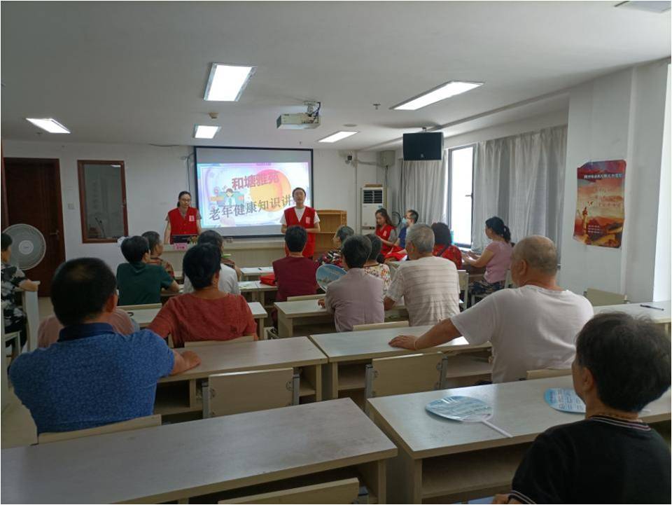 为了提高社区居民的健康意识,普及健康知识,传播健康理念。7月15日上午九点,和塘雅苑社区特邀第九人民医院中医药方医生和牙科胡医生,为社区老人在活动室开展了一场以“夏季养生和老年人常见的牙齿问题”为主题的健康知识讲座,40余名社区老人参加了此次讲座。