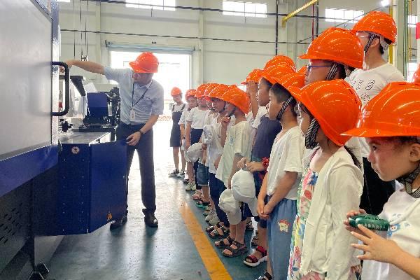 随后在厂区,任文科主任给小朋友们详细介绍了注塑机的工作原理、工作流程。当庞大的注塑机运作起来,生产出一个一个产品的时候,小朋友们专注的眼神目不转睛地盯着,生怕错过了什么。