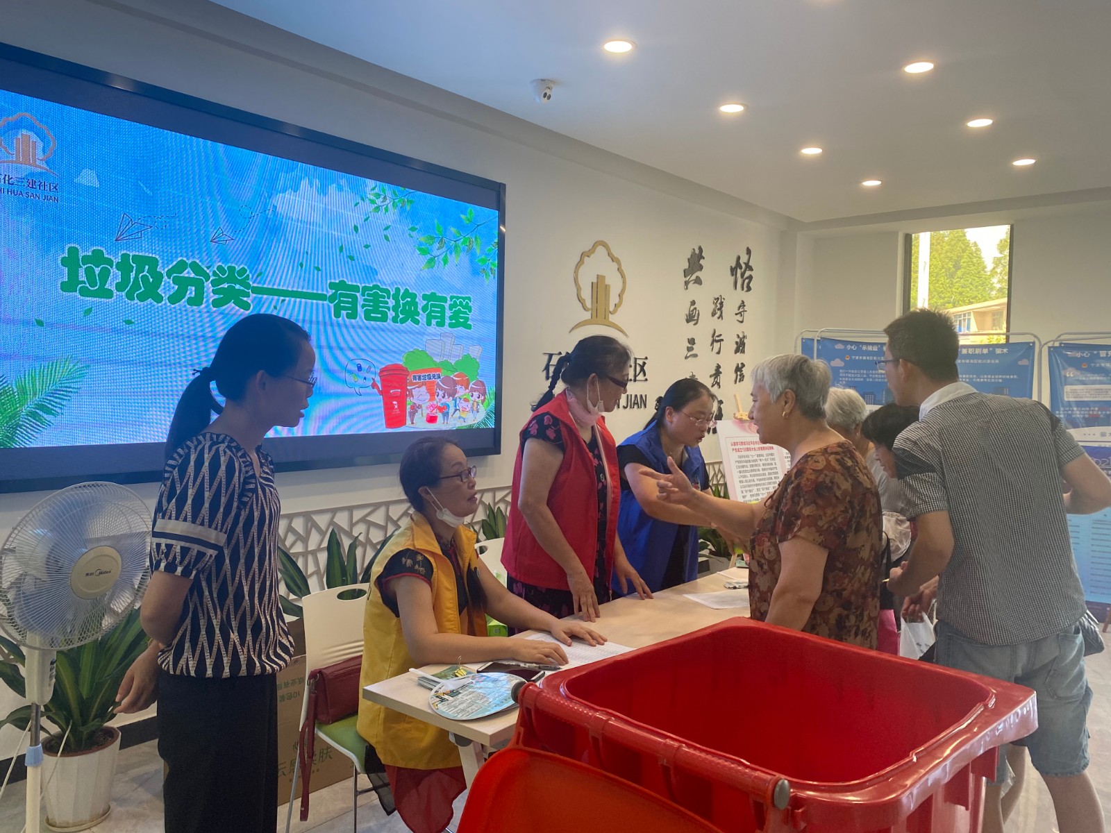 为使居民们更深入了解了有害垃圾对环境造成的危害,提高其积极性、配合度以及对日常生活中有害垃圾的辨识。石化三建社区于今日上午开展了第四期“有害换有爱”活动。