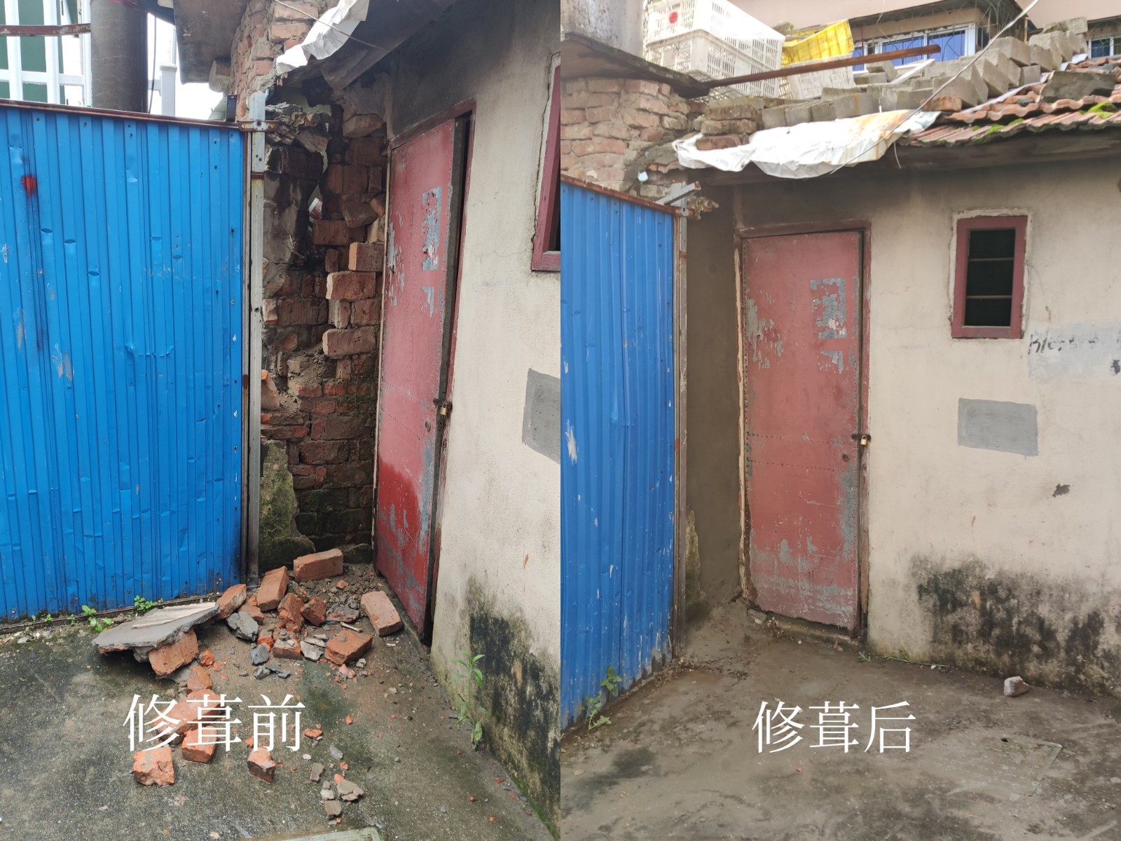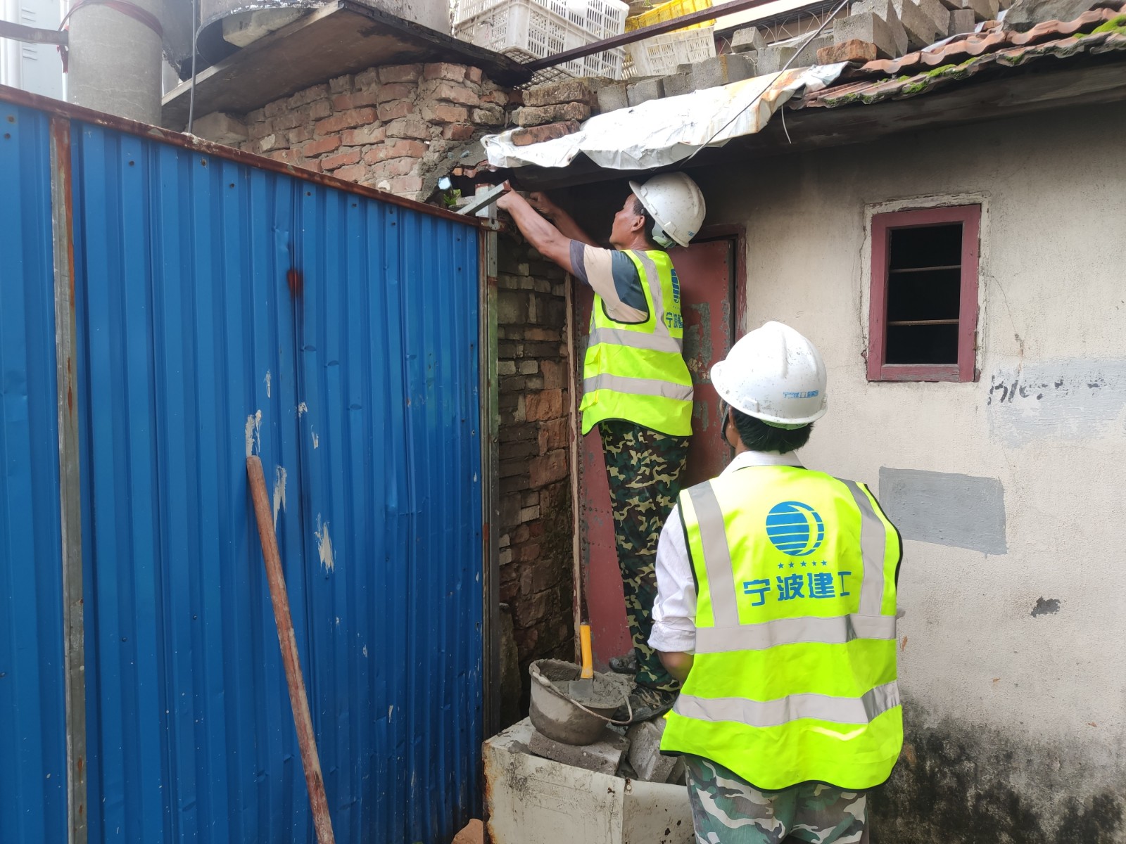 家住信谊社区中塘路87弄的陈先生表示,自家车棚旁边的这面墙开裂也有一段时间了,后来开始掉砖,随时都有倒塌的危险,于是向社区寻求帮助。“中塘路片区是我们社区管辖的重难点地段,地势低洼、房屋建筑年代久远且没有物业,存在各种民生问题。近期又有强台风影响,墙面开裂落砖存在很大的安全隐患。”信谊社区党总支书记俞历急居民所急,第一时间联系了社区党建共建单位——信谊小学东安置房项目临时党支部。临时党支部的负责人了解情况后立即安排工作人员去到现场查看并准备好施工材料。当天下午,施工师傅们顶着烈日、不畏酷暑,赶在台风来临之前,加急为居民砌好了这面“安全墙”。