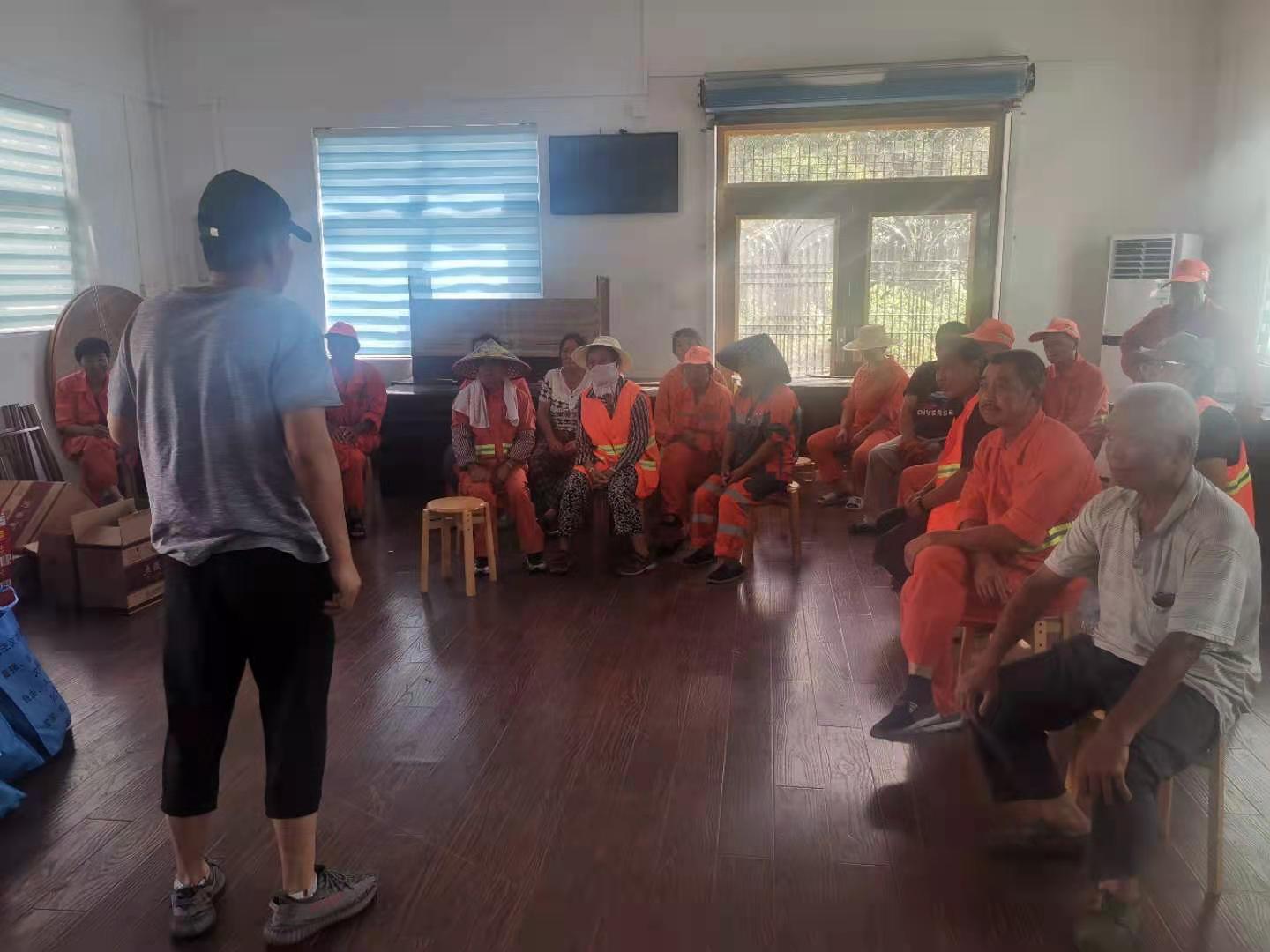 7月21日下午,庄一社区工作人员组织开展了夏季慰问环卫工人活动。活动中,工作人员给环卫工人们分发了防暑用品,为他们在炎热的夏天送上了一丝清凉。同时,工作人员还给各位在高温下作业的环卫工人们科普了夏日防暑小知识,以保障他们在一线工作时能有一个安全的作业环境和健康的体魄。
