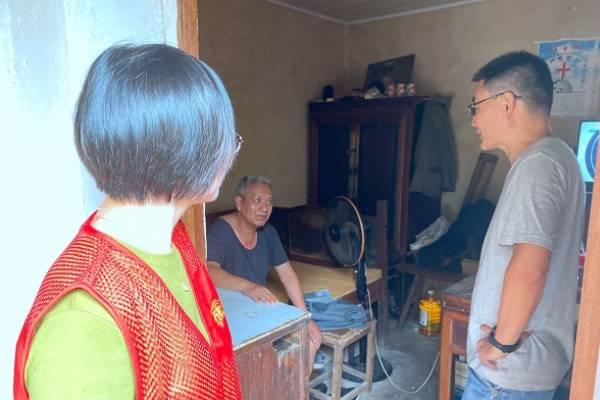 距离台风“烟花”的逐渐登陆时间越来越近,7月24日上午,大碶成校校长王财定和塔峙岙社区党委书记董春燕走访岙底独居老人马亚康。