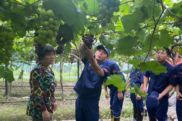 “烟花”台风及强降雨,使渡头董辖区村屯农田受灾严重。26号下午三点多,丁家山村村民丁关云给渡头董社区支部书记郑蕾发来短信,说“老婆在葡萄市场卖葡萄,因疲劳过度,在市场里摔倒,昏迷15分钟,在众人的全力抢救下夺回了一条命,他请求社区帮帮忙,还有很多葡萄挂在架上,无人采摘…….”接到信息后,郑蕾也犯了难,社区已经不遗余力的帮助各种情况的农户抢收葡萄了,再也派不出了人手。随即,她拨通了小港街道消防中队的电话。