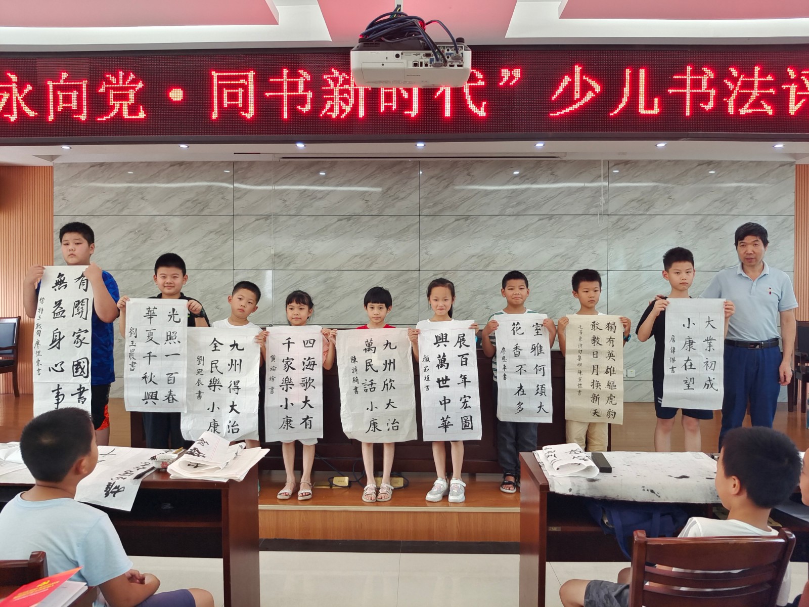 为庆祝中国共产党成立100周年,深情讴歌党团结带领全国各族人民取得的辉煌成就,激发青少年爱党爱国的无限热情。728午,中街社区多功能厅开展了以童心永向党.同书新时代”为主题的少儿软笔书法比赛活动截止颁奖前一天,共收小区小朋友作品30余幅。颁奖现场由3位专业书法老师打分,按照分数高低,评选出一等奖二等奖三等奖和优胜奖。社工、书法老师为获奖的小朋友颁发了奖状和奖品,小朋友们满心欢喜。此次活动,进一步增强了青少年从小为实现中华民族伟大复兴的中国梦而奋斗的决心和历史使命感。活动现场,小书童们在书法老师的指导下挥毫泼墨,激情演绎书法的神奇魅力,“少年强,则国强”、“百年初心,历久弥坚”、“百年风雨,百年历程,百年恰是风华正茂”等一幅幅讴歌共产党好、祖国好的精品力作,书写着对党和祖国的美好祝福。