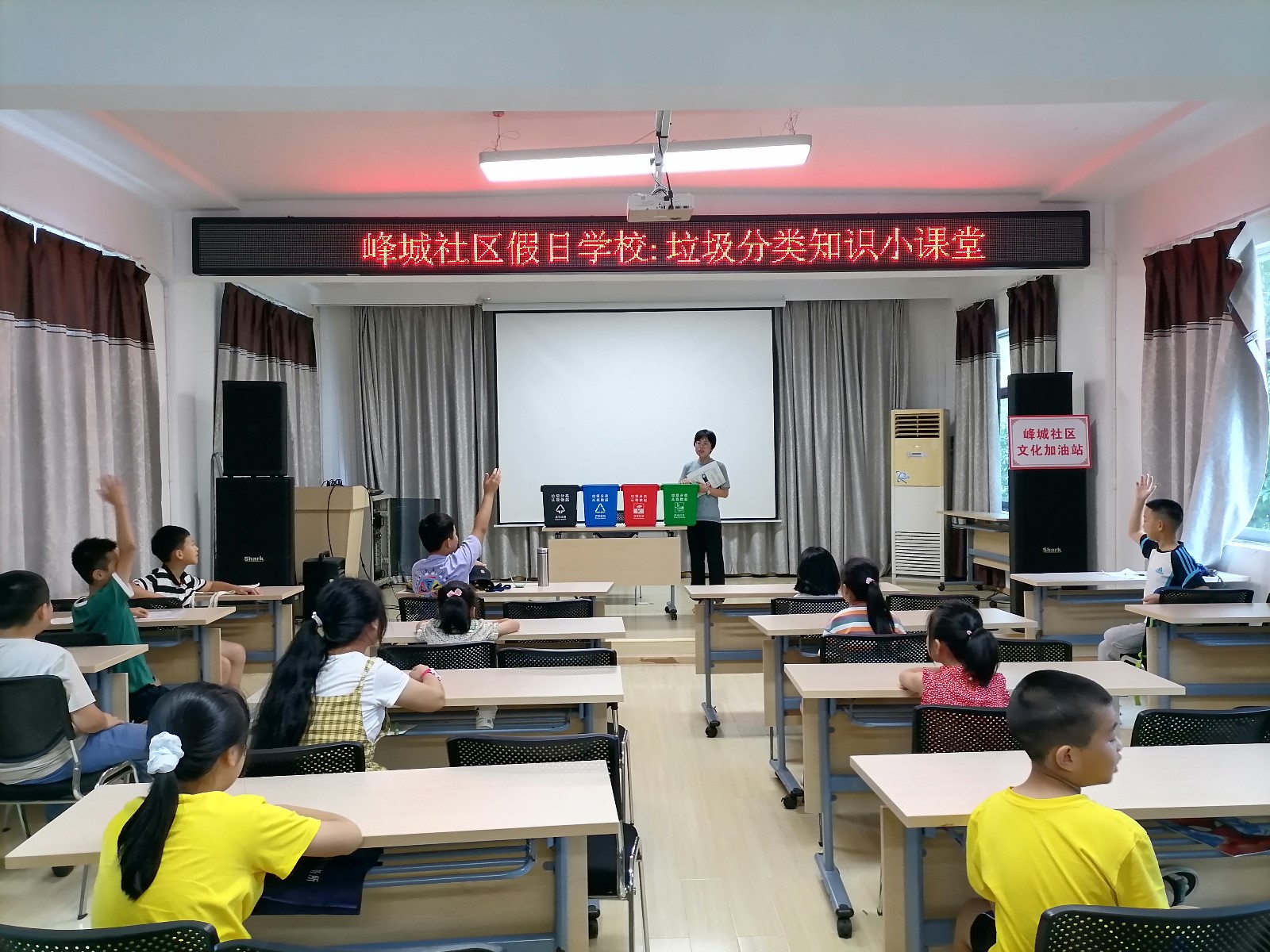 “你们知道垃圾分类有几种嘛?垃圾桶的颜色以及标识你们分的清楚吗……”为了更好地利用资源,减少资源的浪费,同时满足孩子们对环保知识的好奇,峰城社区利用假日学校组织青少年开展“垃圾分类 从我做起”——垃圾分类小课堂,通过社区工作人员的讲解让青少年认真学习关于垃圾分类知识,培养他们的环保意识,为他们普及垃圾分类常识。
