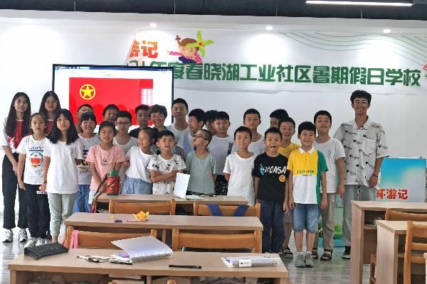7月28日上午,北仑区春晓成校春晓湖工业社区假日学校特邀请大学退休教师陆志聪老师为同学们带来“童心向党”爱国主题教育课程。