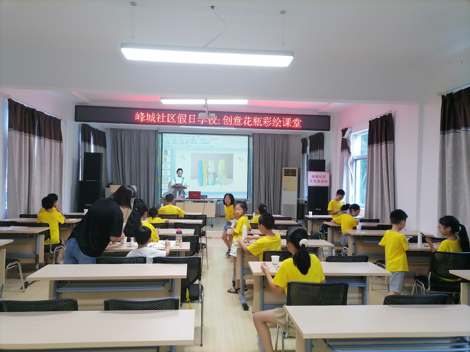 为让社区里的青少年们体验绘画艺术乐趣、激发创作灵感、锻炼动手能力,8月2日上午,峰城社区假日学校邀请了白峰幼儿园的孙艳艳老师为假日学校的学生上了一堂“手绘花瓶·放飞想象”的精彩美术课。