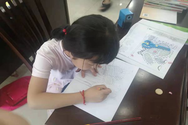 “沙沙沙,沙沙沙……”7月30日上午,九峰山社区的“三心”假日学校的课堂里传来整齐的声响,原来,在大碶小学柯海妮老师的指导下,学员们正在埋头创作属于自己的风景画。