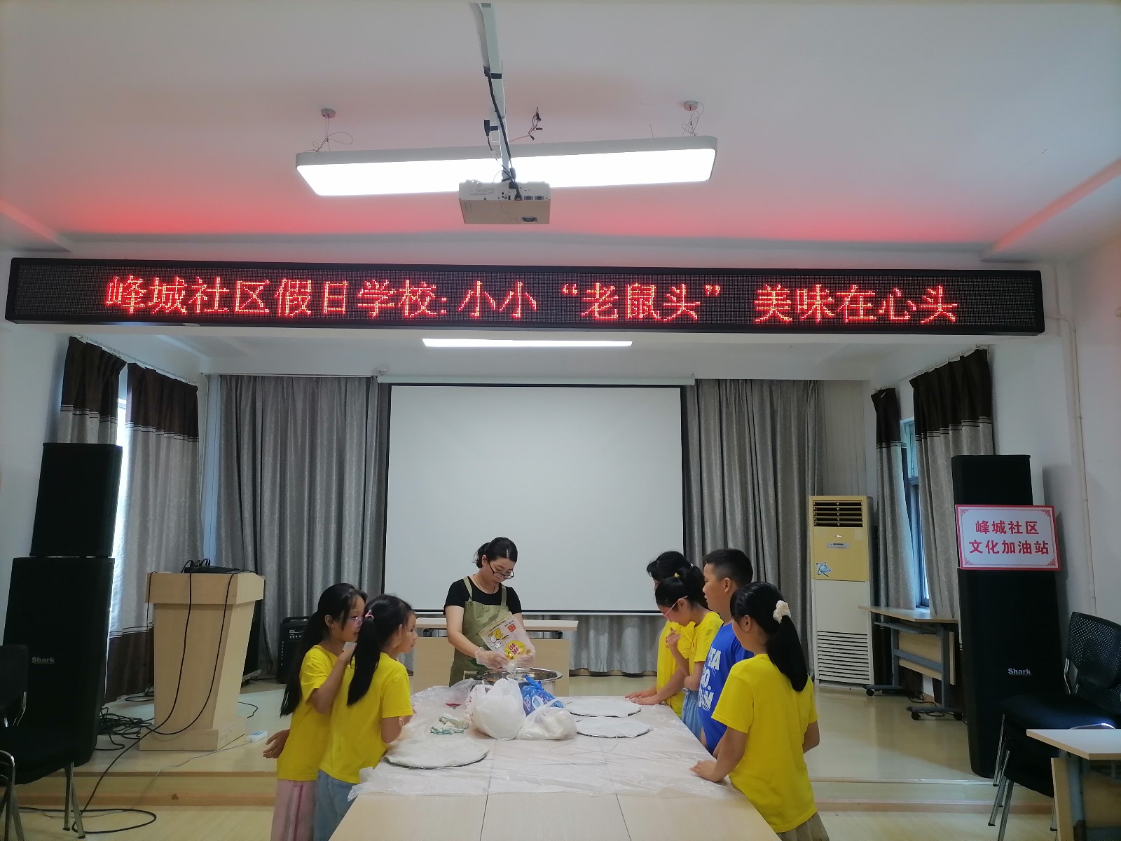 为增强孩子们对传统美食的了解,让孩子们亲历制作“老鼠头”的过程,体验动手的乐趣,培养他们珍惜粮食、尊重劳动成果的美德,8月4日上午,峰城社区假日学校邀请白峰街道厨娘协会老师来教小朋友制作白峰特色美食“老鼠头”。